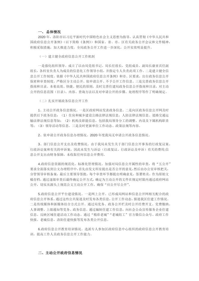老城区住房和城乡建设局2020年政府信息公开工作年度报告.doc
