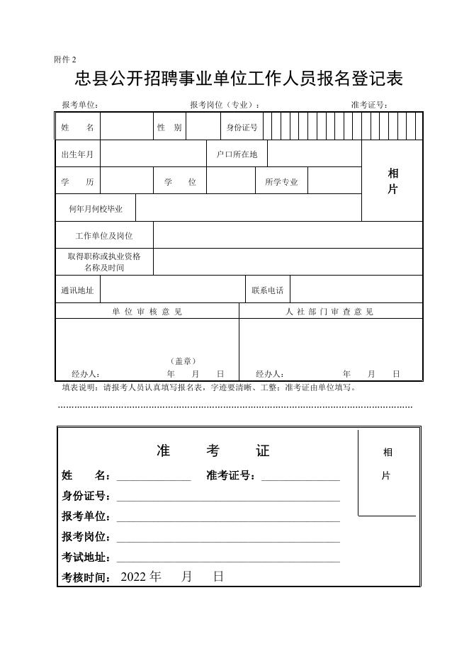 附件2 忠县公开招聘事业单位工作人员报名登记表.doc