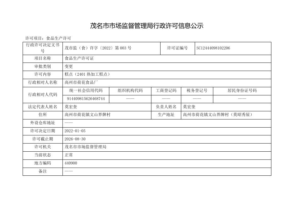 食品生产许可证变更【高州市荷花食品厂,20220105】.docx