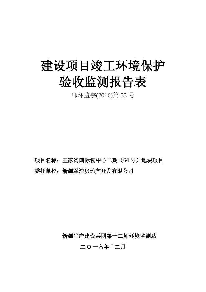 师环监字(2016)第33号王家沟国际物中心二期(64号)地块项目.doc