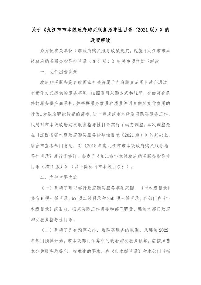 关于《九江市市本级政府购买服务指导性目录(2021版)》的政策解读.docx