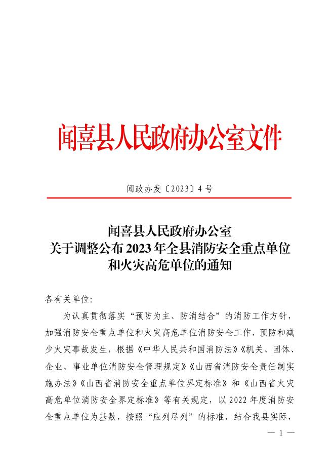 闻喜县人民政府办公室关于调整公布2023年全县消防安全重点单位和火灾高危单位的通知.pdf