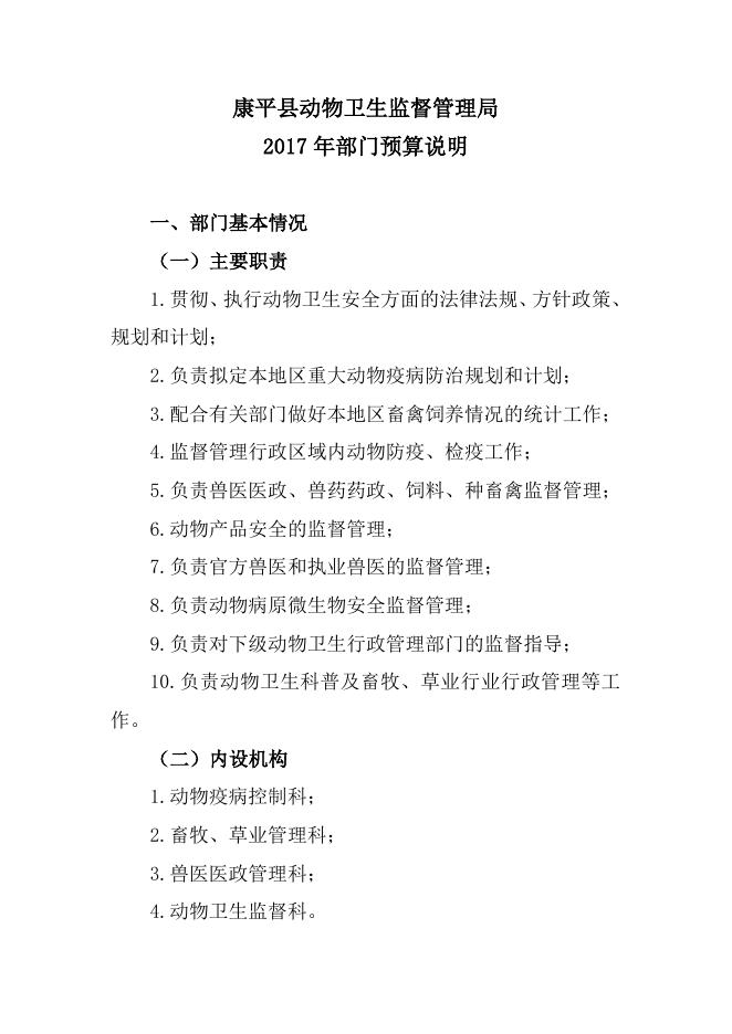 康平县动物卫生监督管理局2017年度部门预算公开说明.doc
