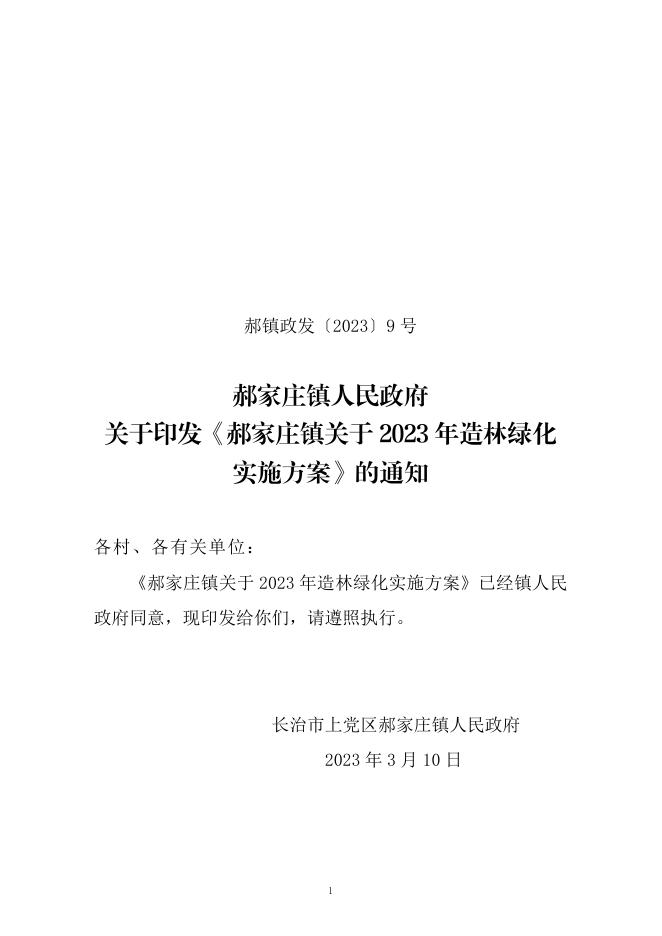 2023年9号 郝家庄镇人民政府关于印发《郝家庄镇关于2023年造林绿化实施方案》的通知.docx