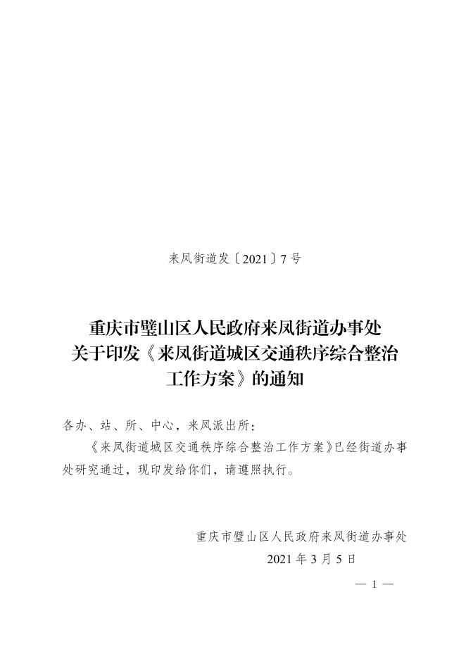 来凤街道发〔2021〕7号 关于印发《来凤街道城区交通秩序综合整治工作方案》的通知 .pdf