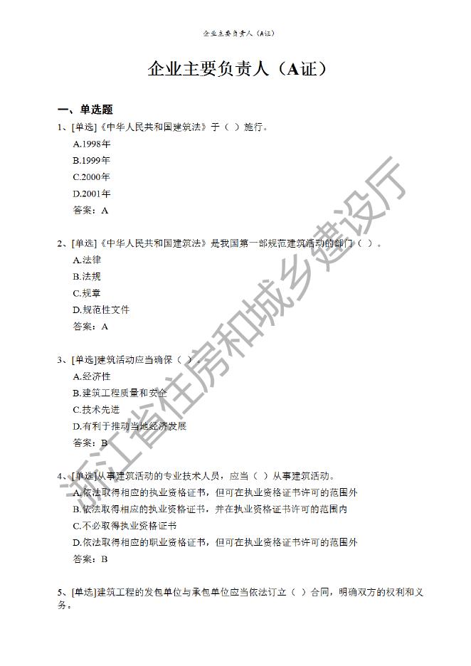 企业主要负责人(A证)题库.pdf