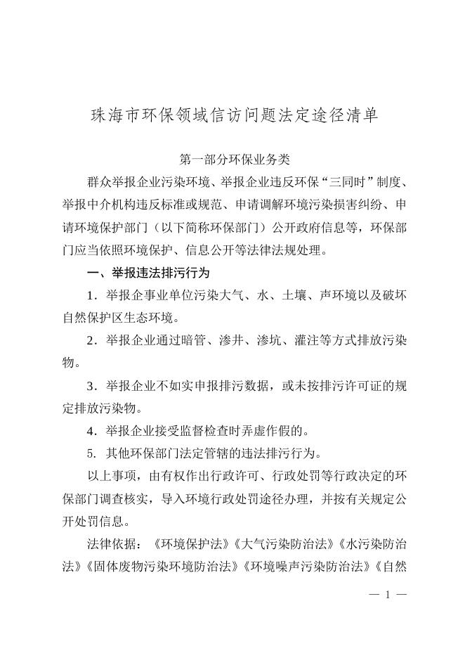 珠海市环保领域信访问题法定途径清单.doc