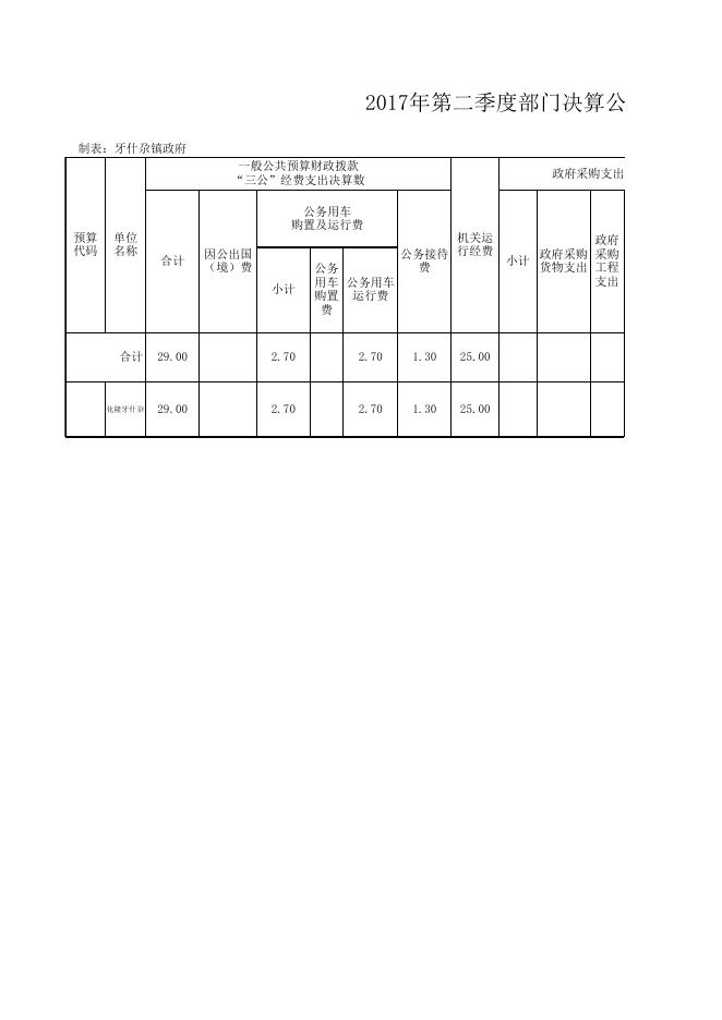 附件:牙什尕镇2017年第二、三季度三公经费暨机关运行经费公开.xlsx