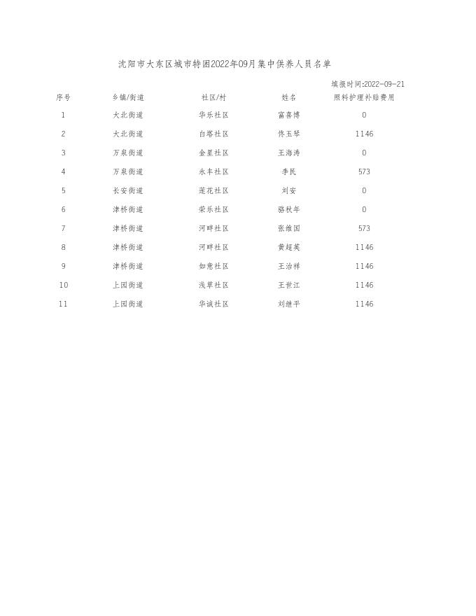 沈阳市大东区城市特困2022年09月集中供养人员名单.xls