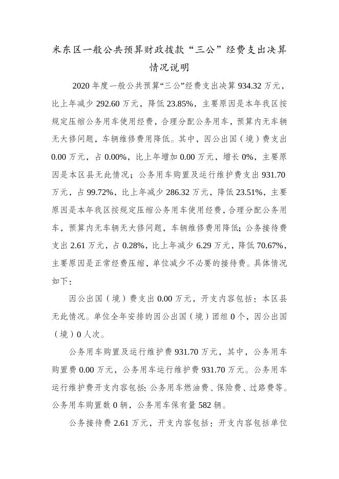 2020年米东区一般公共预算财政拨款“三公”经费支出决算情况说明.doc