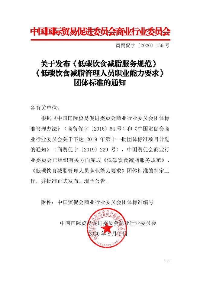 关于发布《低碳饮食减脂服务规范》《低碳饮食减脂管理人员职业能力要求》团体标准的通知.pdf