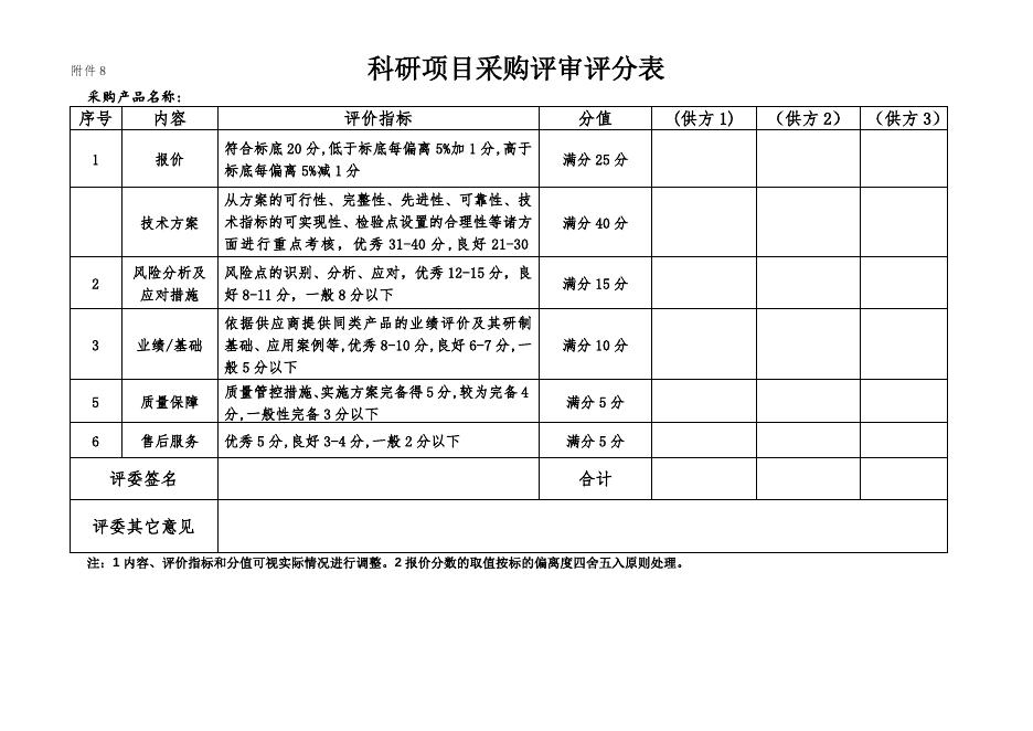 附件8-评分表(内容和分值可根据项目的具体情况进行调整).docx