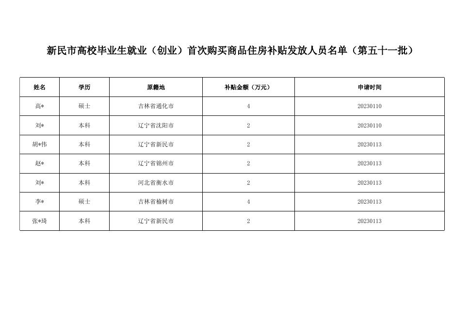 新民市高校毕业生就业(创业)首次购买商品住房补贴发放人员名单(第五十一批).xlsx