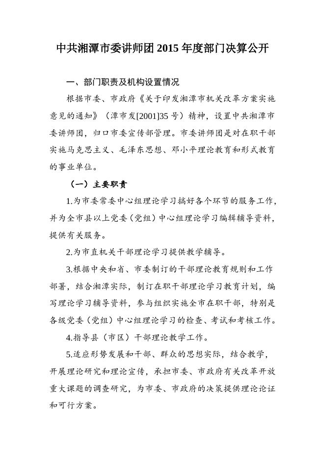 湘潭市委讲师团2015年决算及“三公”经费决算表.doc