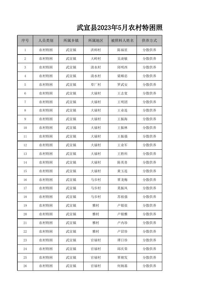 武宣县2023年5月农村特困照料人补贴金发放名册.xlsx