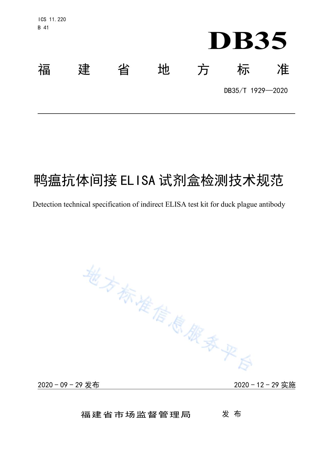 鸭瘟抗体间接ELISA 试剂盒检测技术规范