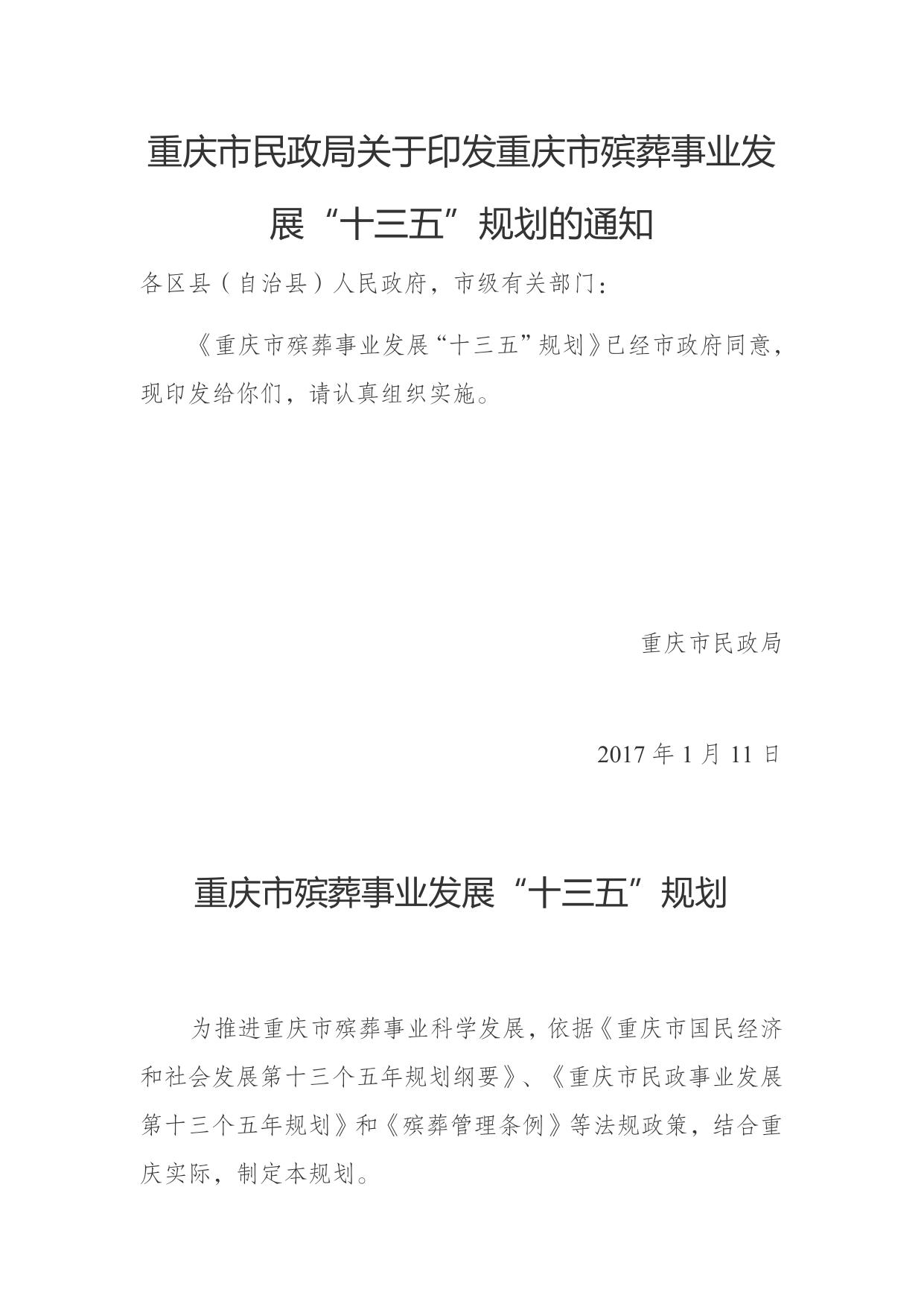 重庆市民政局关于印发重庆市殡葬事业发展“十三五”规划的通知.docx