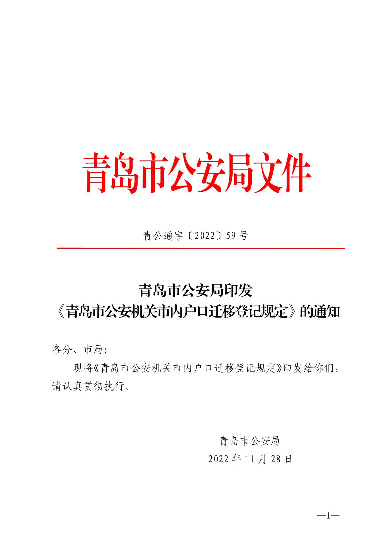 青岛市公安局关于印发《青岛市公安机关市内户口迁移登记规定》的通知.pdf