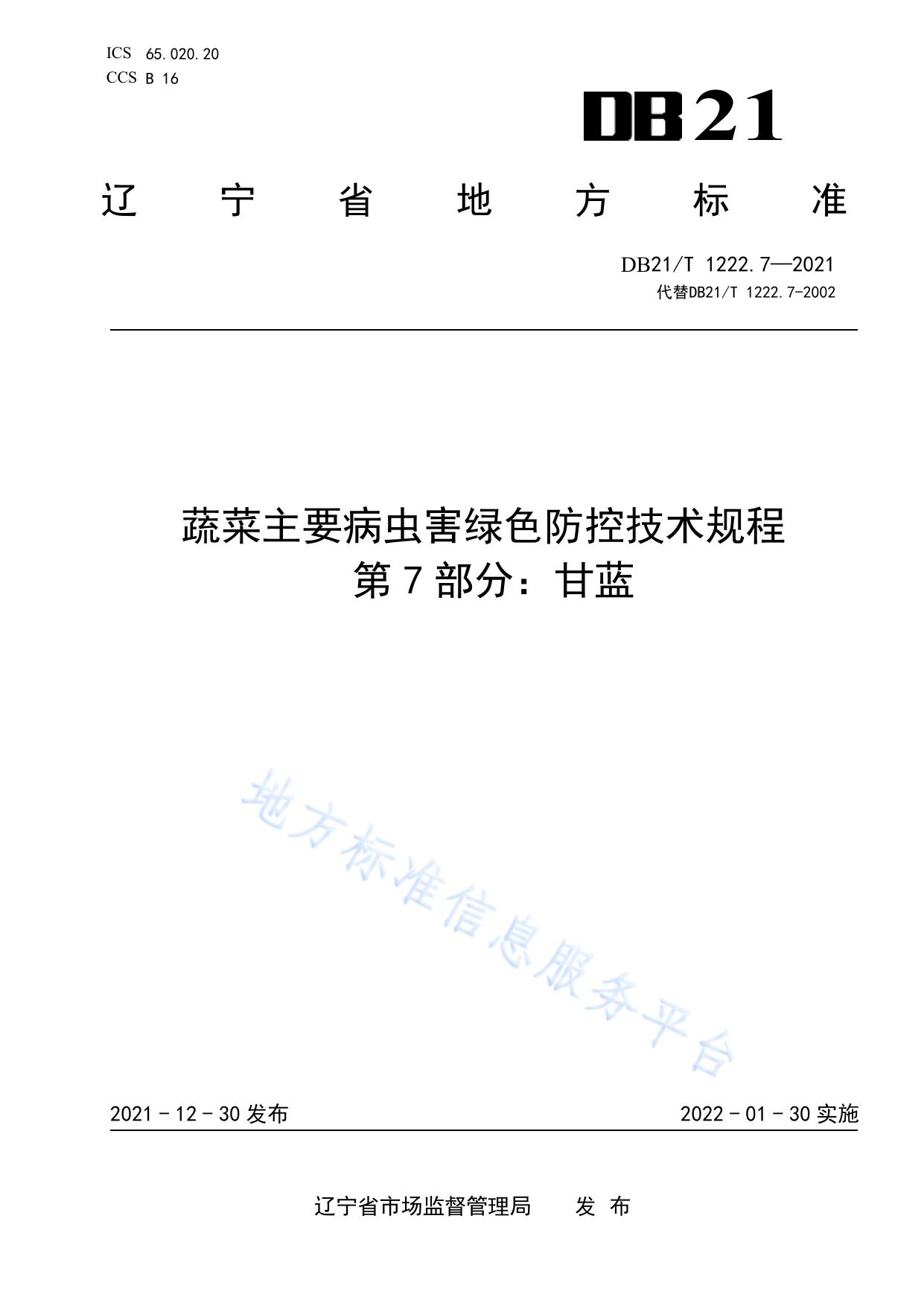 蔬菜主要病虫害绿色防控技术规程 第7部分:甘蓝