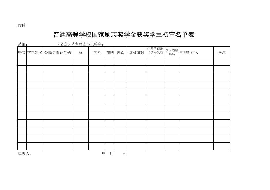 点击下载附件:附件6:普通高等学校国家励志获奖学金获奖学生初审名单表.xls
