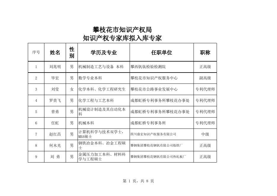攀枝花市知识产权专家库拟入库专家名单.xls