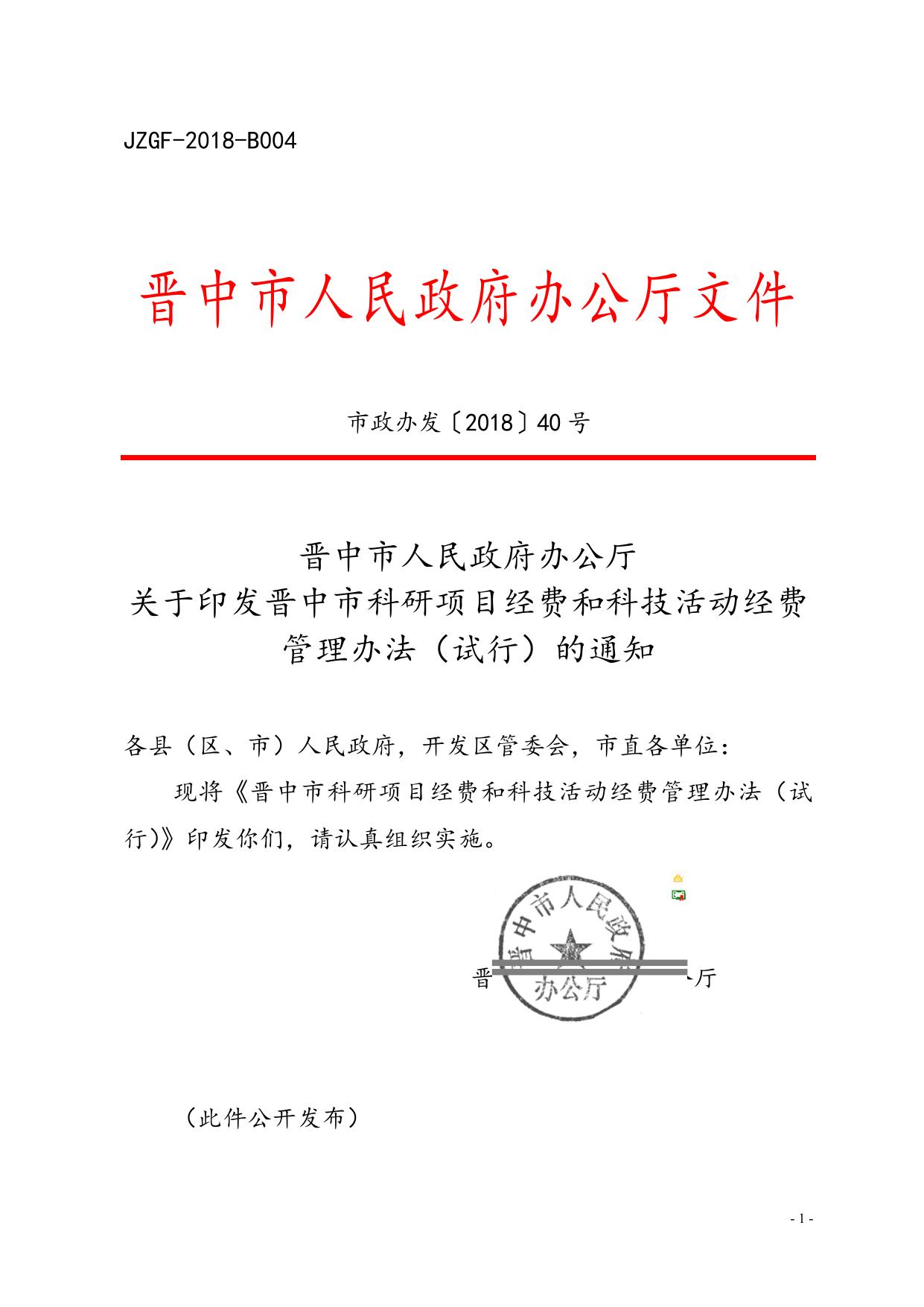 《晋中市科研项目经费和科技活动经费管理办法(试行)》(市政办发〔2018〕40号).doc