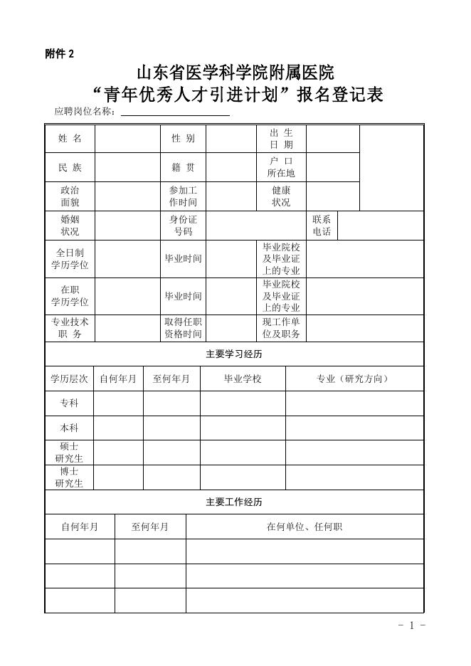 山东省医学科学院附属医院公开招聘“青年优秀人才引进计划”报名登记表.doc