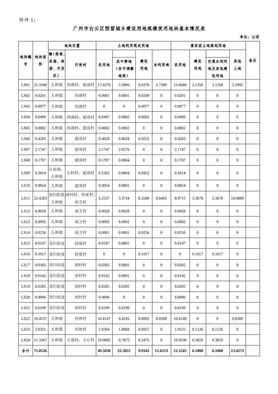附件1:预留城乡建设用地规模使用地块基本情况表.docx