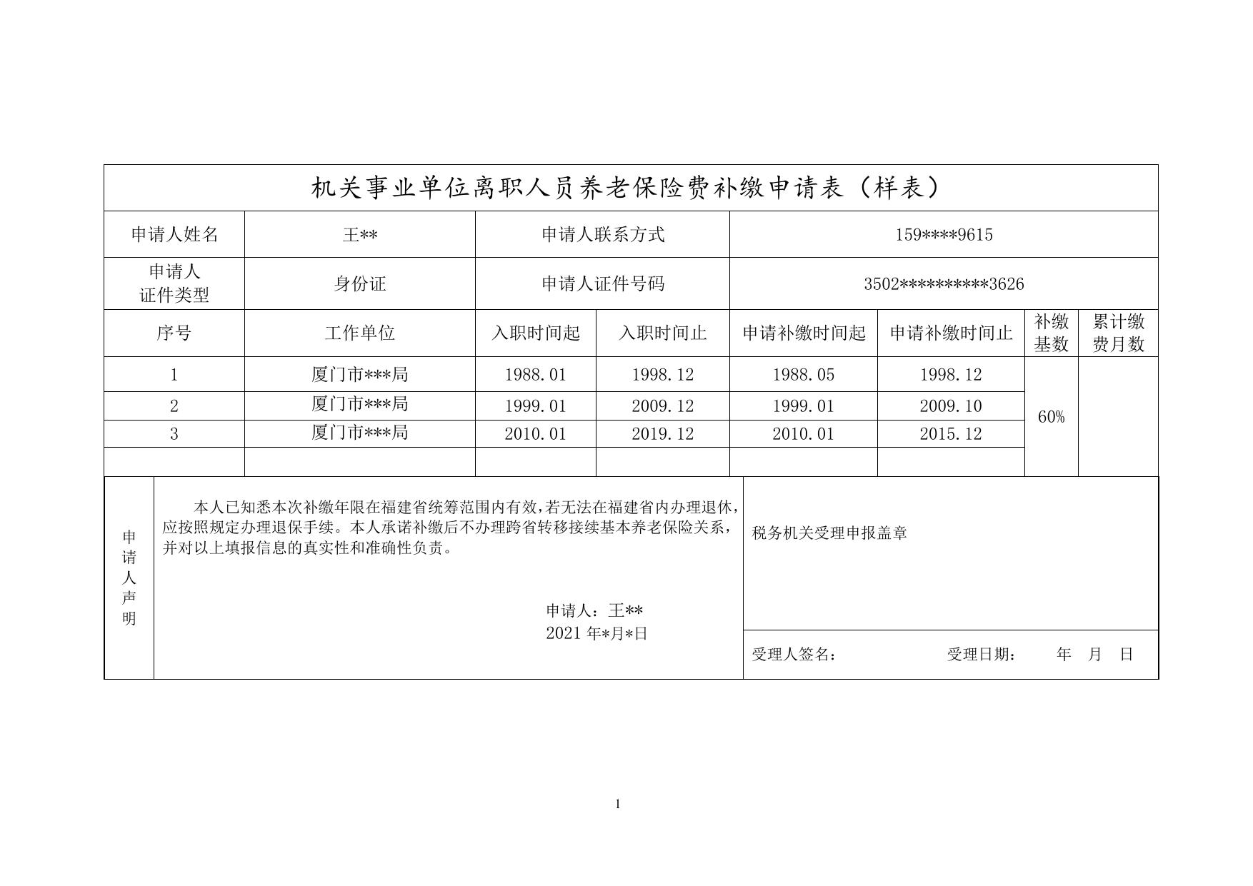 机关事业单位离职人员养老保险费补缴申请表(样表).doc