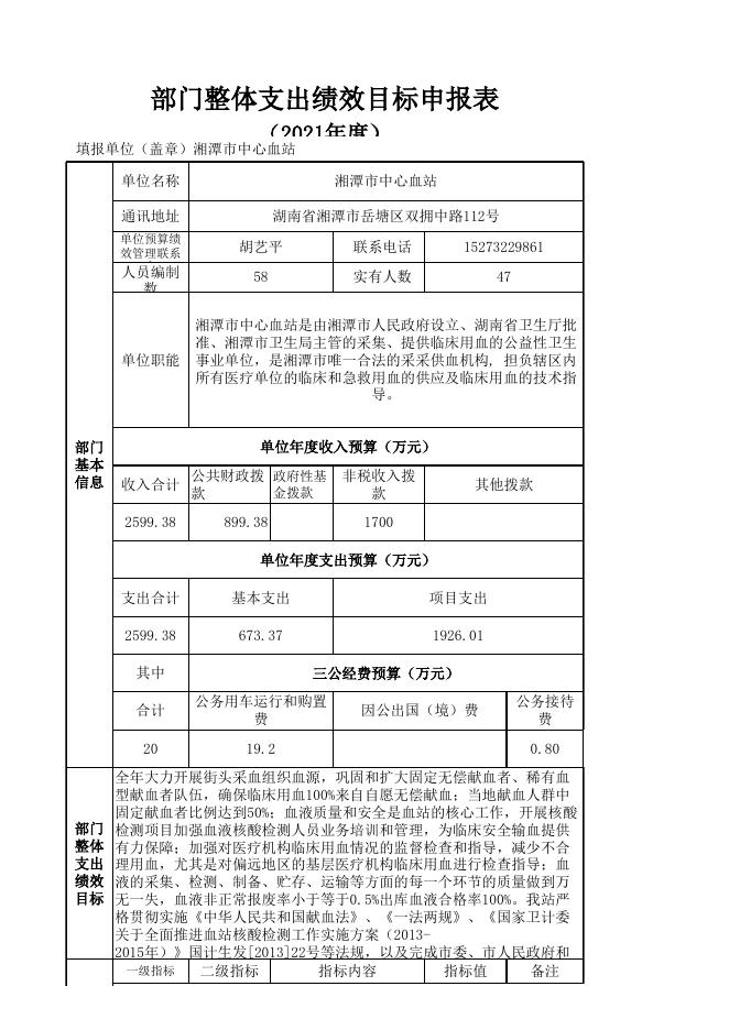 血站2021年部门整体支出预算绩效目标申报表.xls