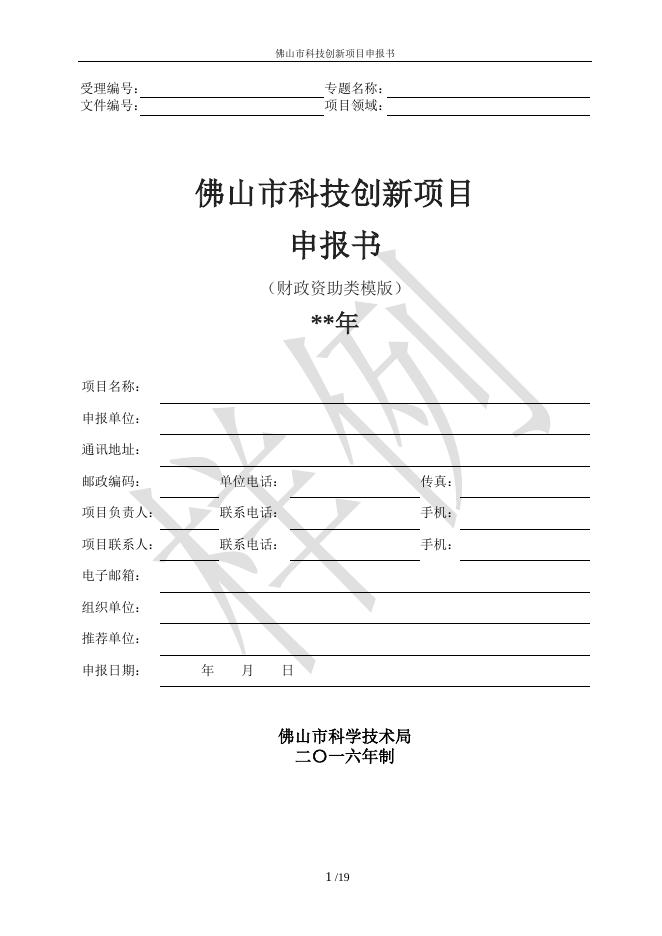 佛山市科技创新项目申报书(财政资助类模板).doc