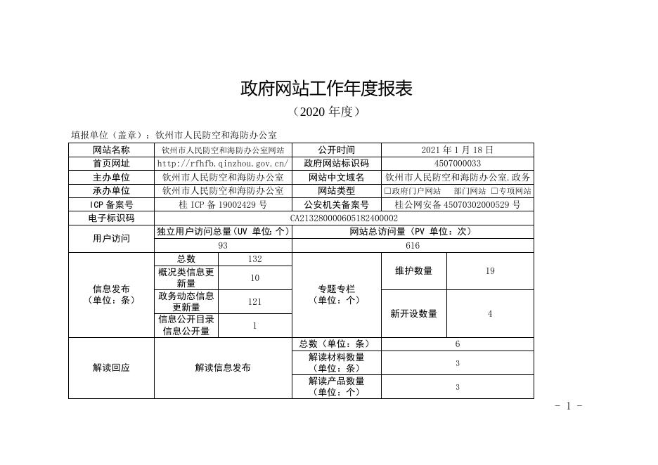 市人防海防办政府网站工作年度报表(2020年度).doc