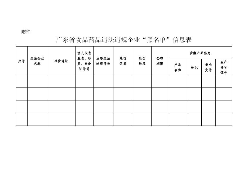 广东省食品药品违法违规企业“黑名单”信息表.doc