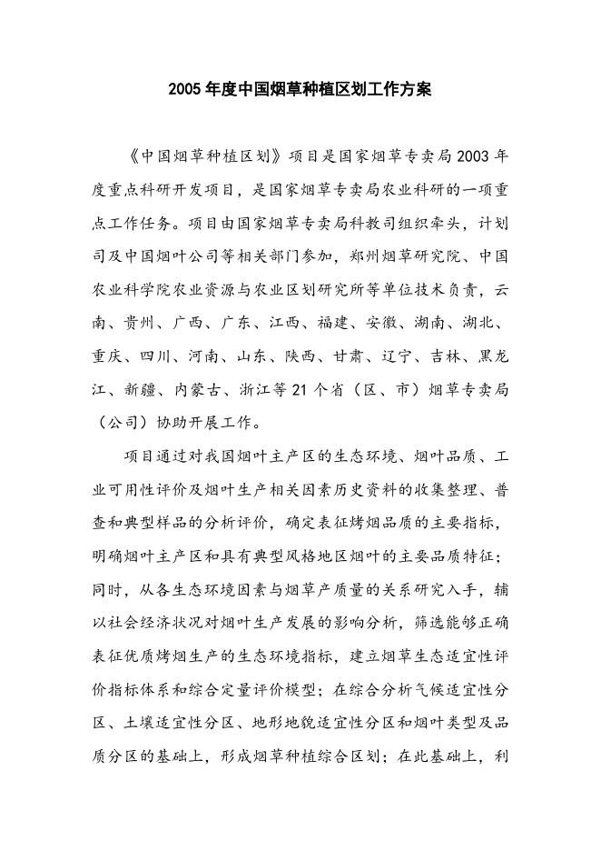 2005年度中国烟草种植区划工作方案.doc