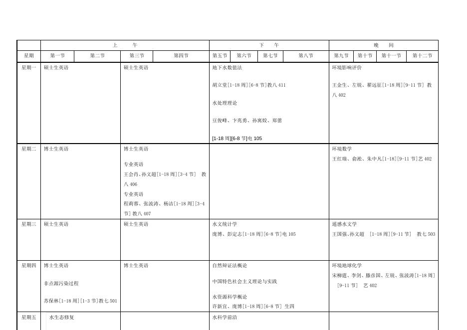 北京师范大学水科学研究院课程表(2015-2016学年第二学期) .docx