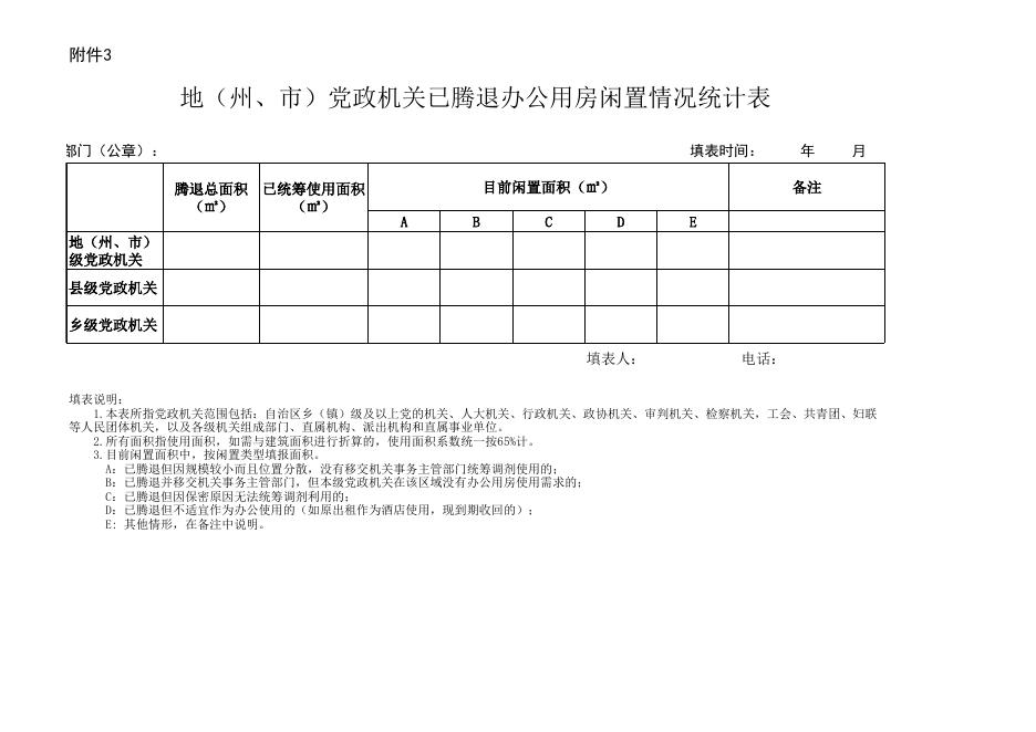 地(州、市)党政机关已腾退办公用房闲置情况统计表.xls
