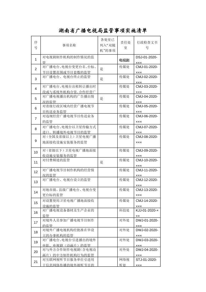 湖南省广播电视局监管事项实施清单.doc