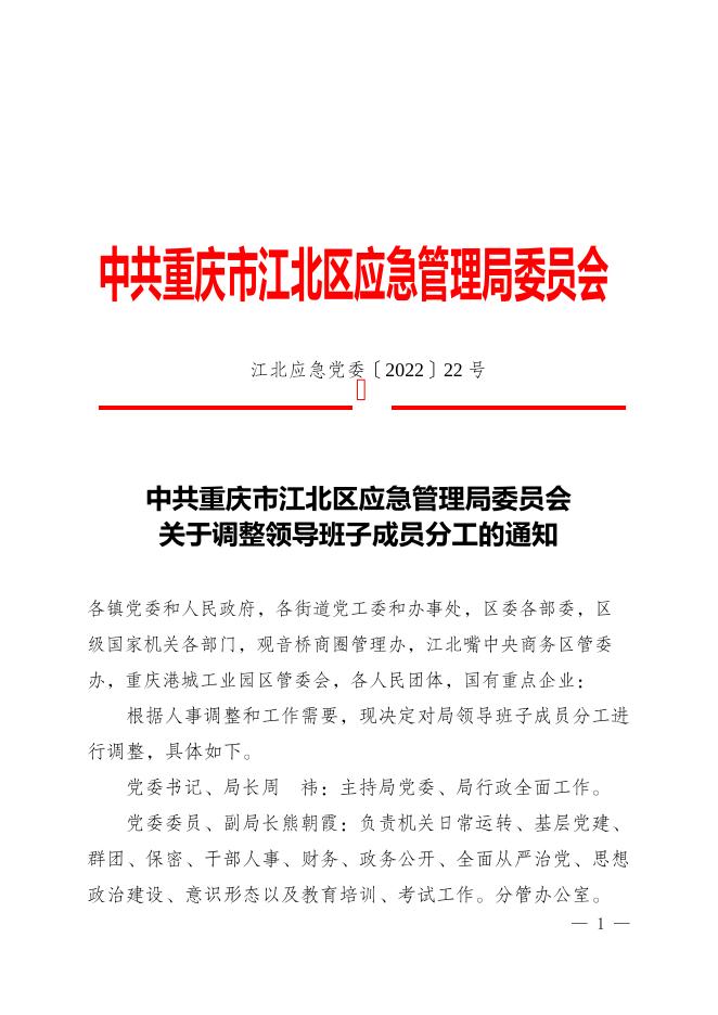 (电子版)江北应急党委〔2022〕22号-关于调整领导班子成员分工的通知.doc