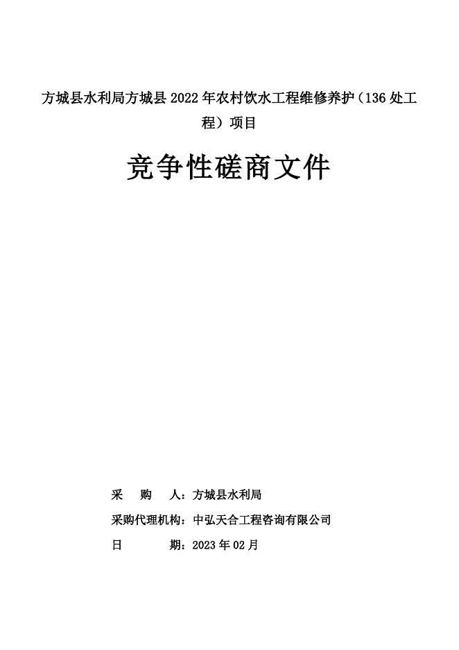 方城县水利局方城县2022年农村饮水工程维修养护(136处工程)项目(本文件只提供阅读查看,如需投标请登录业务系统下载招标文件).pdf