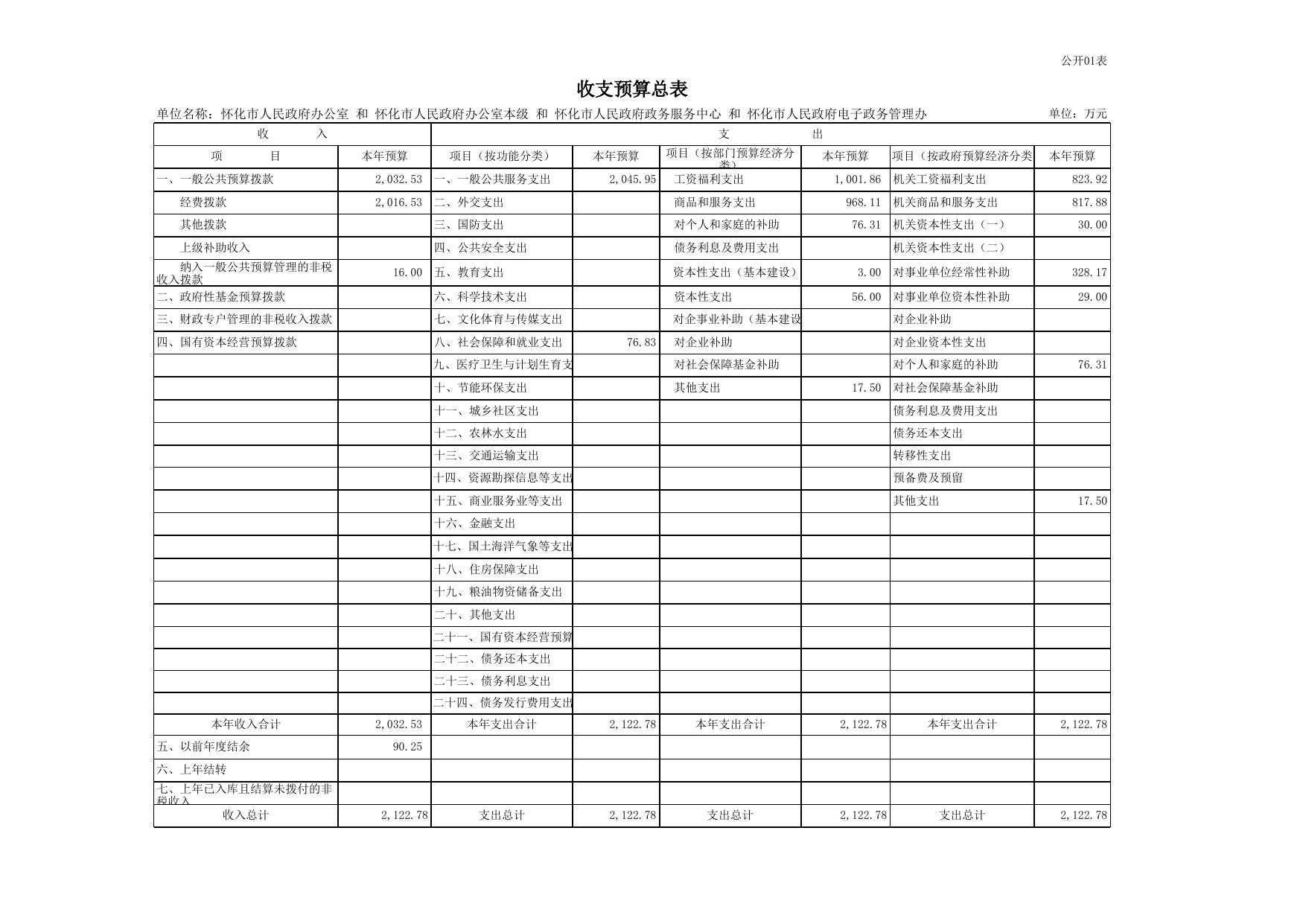 部门预算公开表2018汇总xls