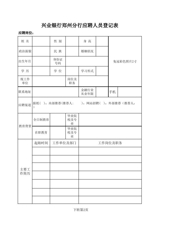 《兴业银行郑州分行应聘表》.xls