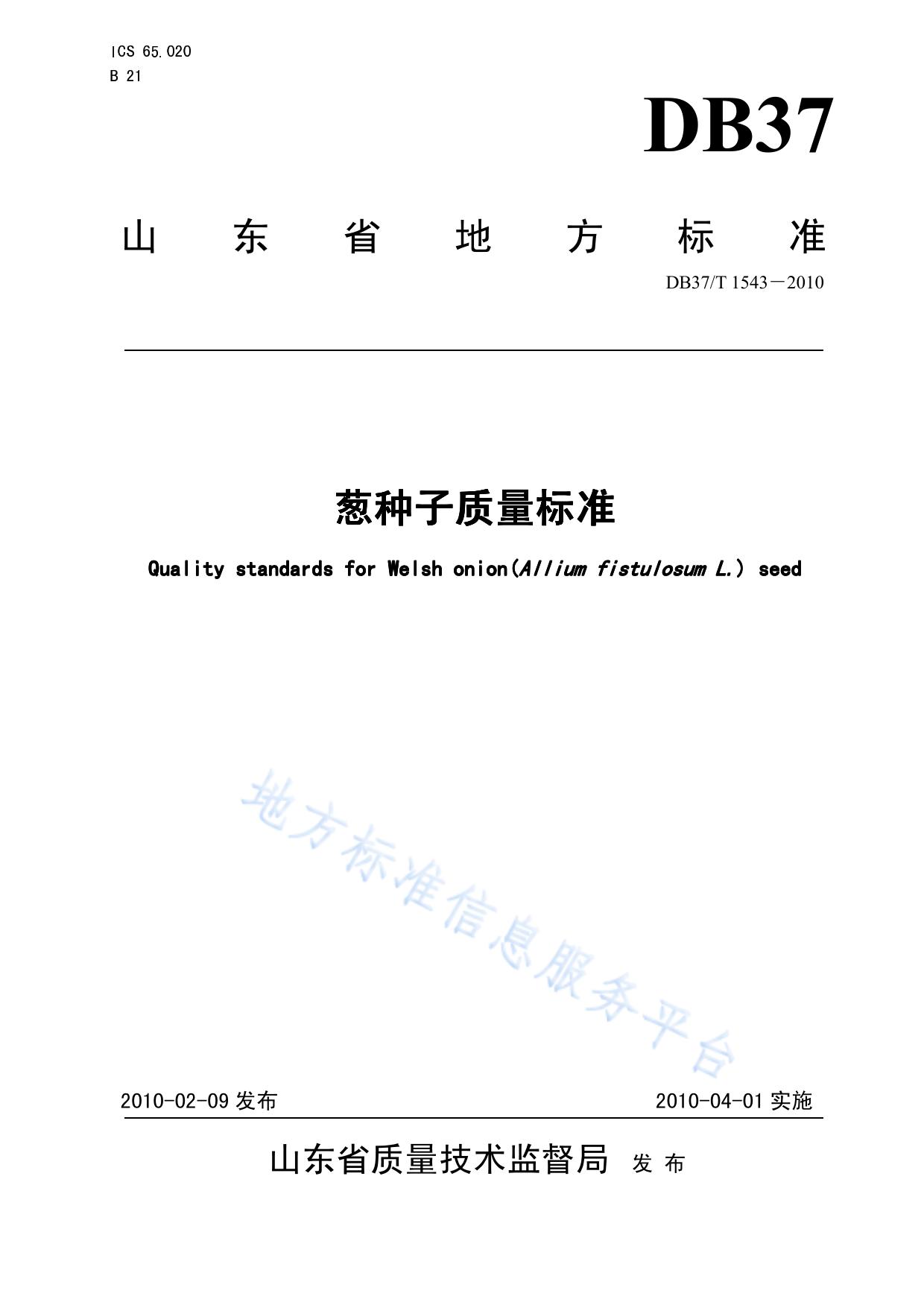 葱种子质量标准