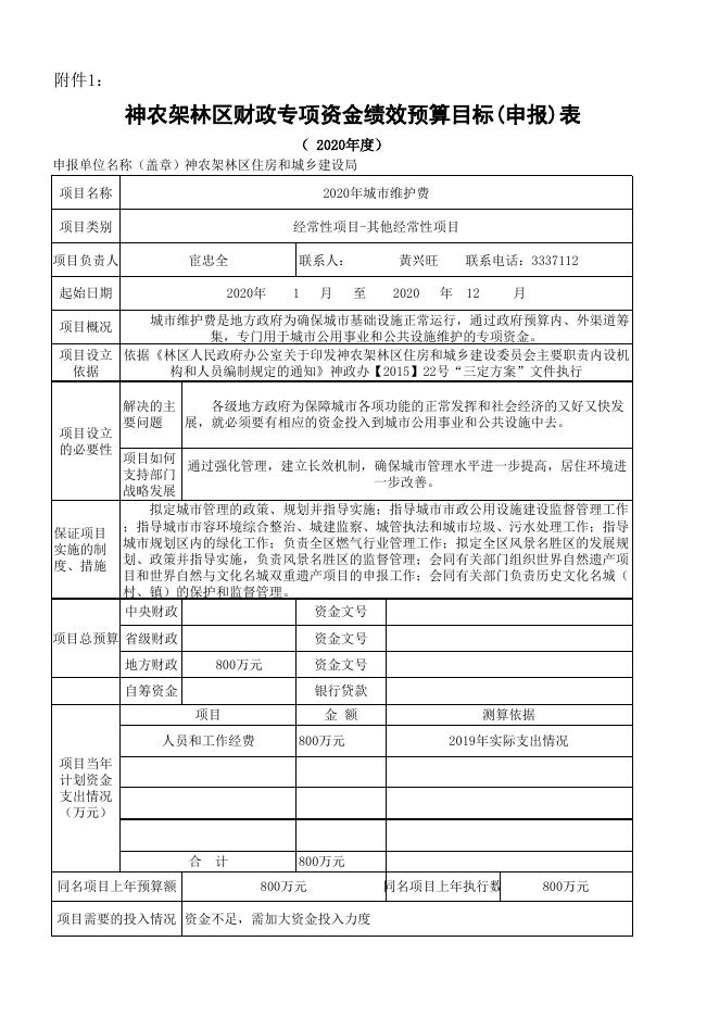 神农架林区住房和城乡建设局2020年专项资金绩效目标申报表.xls