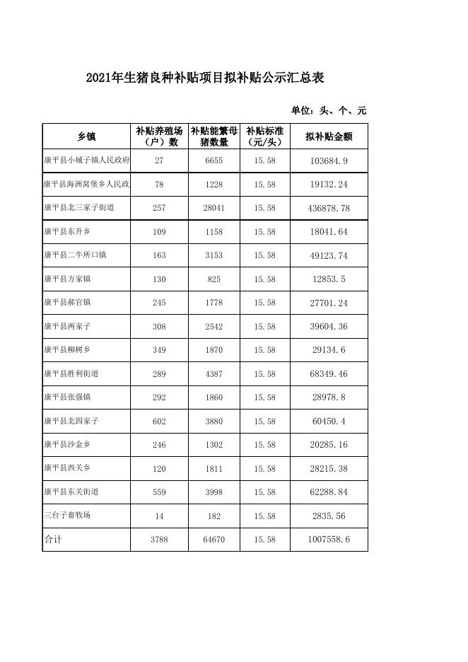 2021年生猪良种补贴项目拟补贴公示汇总表.xls