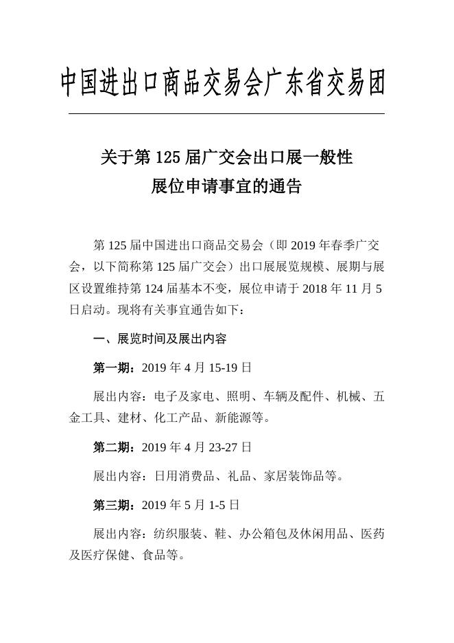 关于第125届广交会出口展一般性展位申请事宜的通告.docx