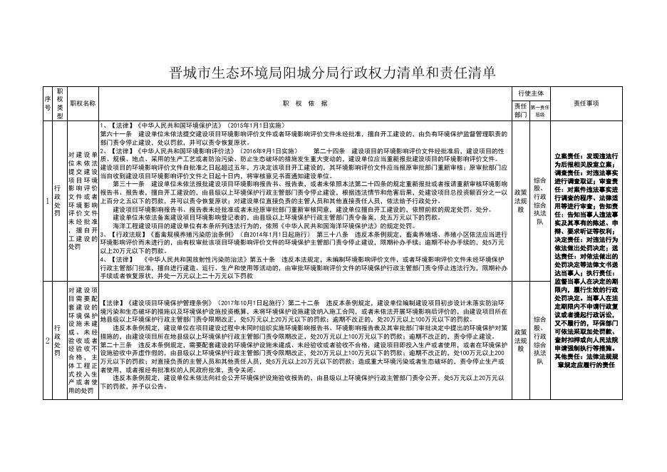 晋城市生态环境局阳城分局行政权力清单和责任清单.xlsx