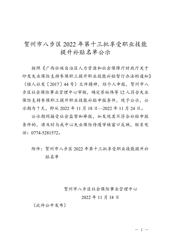 贺州市八步区2022年第十三批享受职业技能提升补贴名单公示.docx