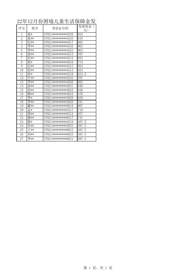 城阳区2022年12月份困境儿童生活保障金发放明细.xlsx