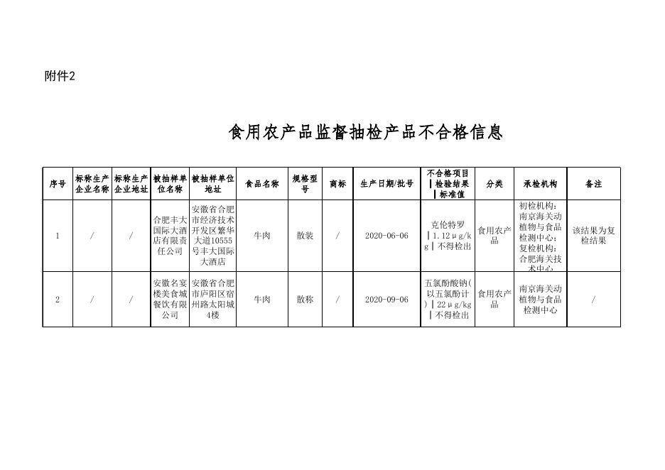 附件2:食用农产品监督抽检产品不合格信息.xlsx
