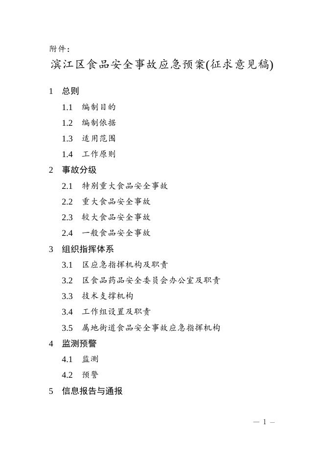 滨江区食品安全事故应急预案(征求意见稿).doc
